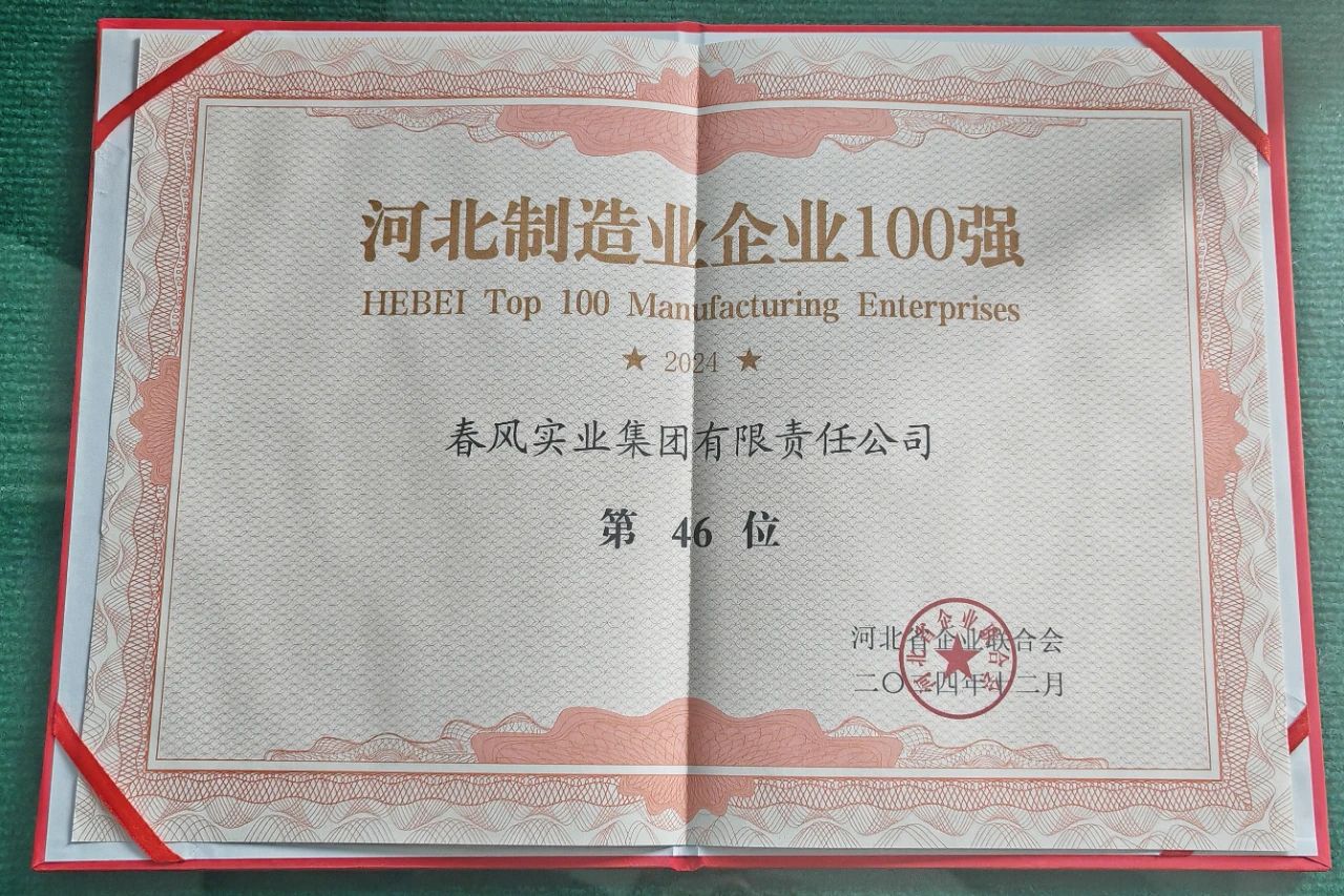 【喜報(bào)】春風(fēng)實(shí)業(yè)集團(tuán)榮獲“2024河北企業(yè)100強(qiáng)”和“河北制造業(yè)企業(yè)100強(qiáng)”稱號(hào)!