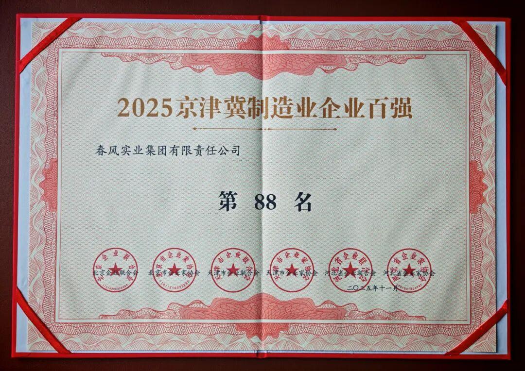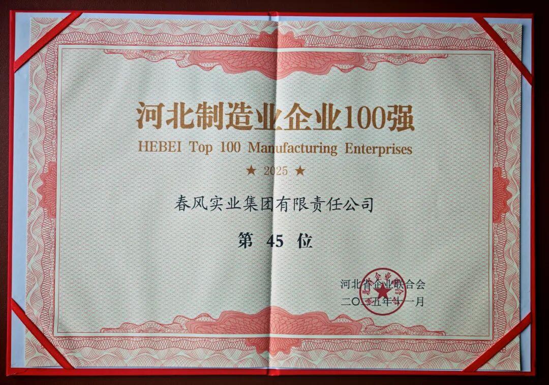 春風(fēng)實(shí)業(yè)集團(tuán)榮獲“2025河北企業(yè)100強(qiáng)”“2025河北