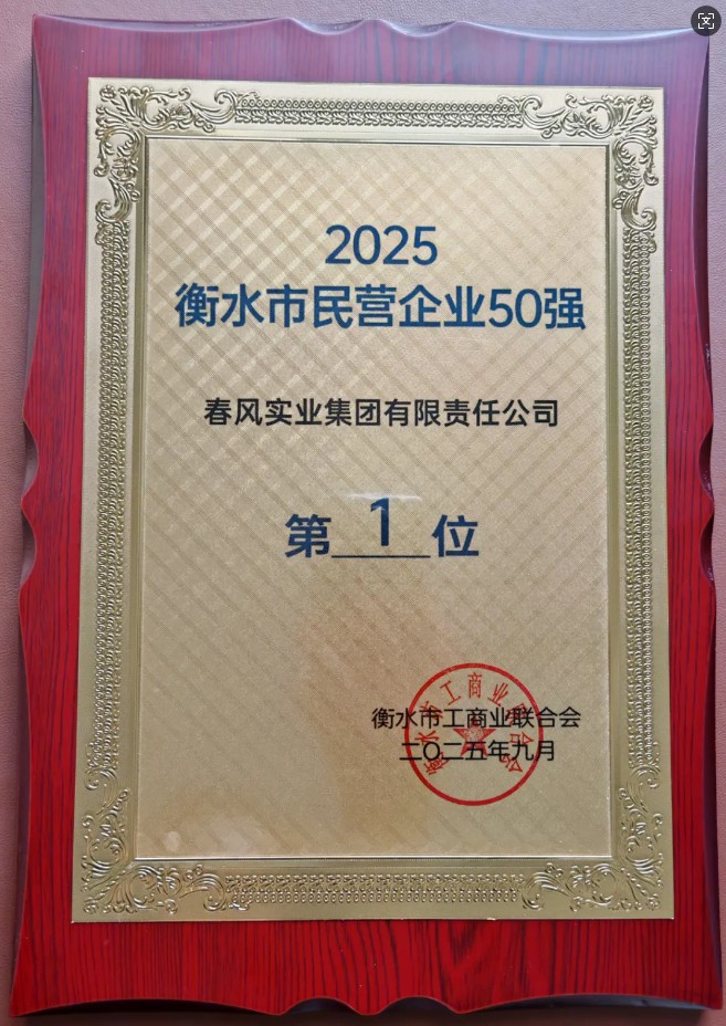 日前,市工商聯隆重發布2025衡水市民營企業50強榜單。春風實業集團榮獲“2025衡水市民營企業50強”第一位。
